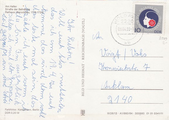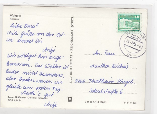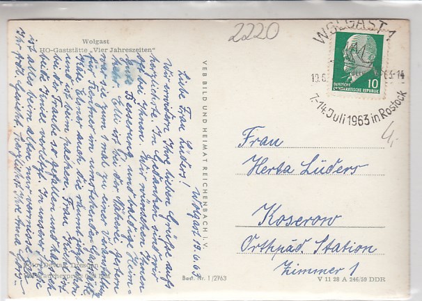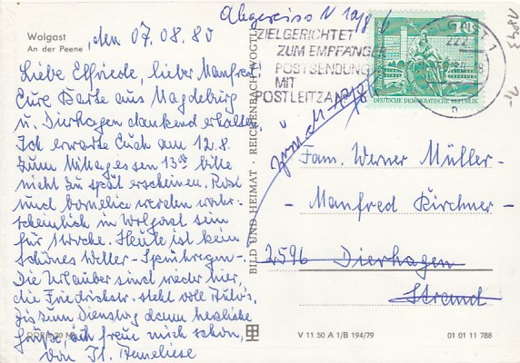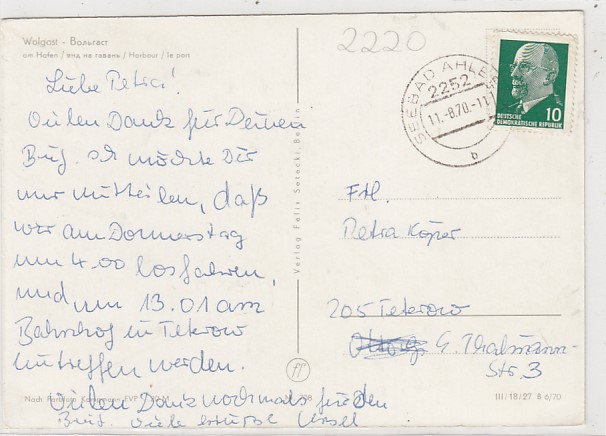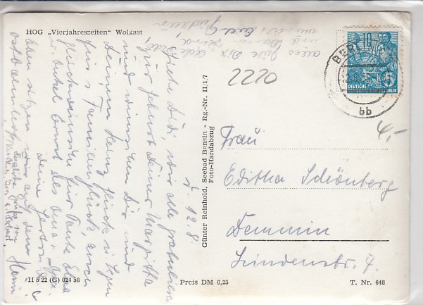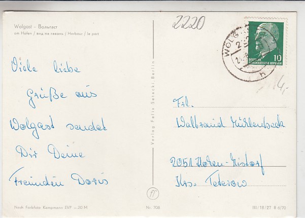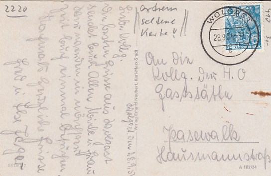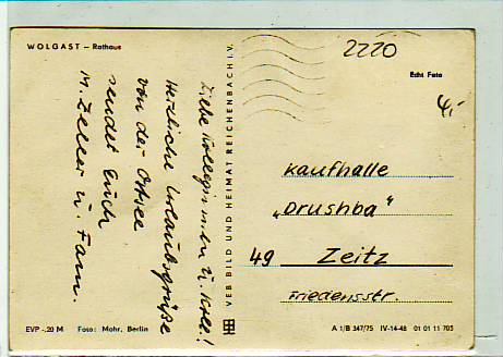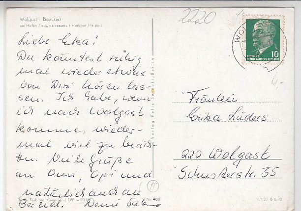 Wolgast Mecklenburg 1970 Rückseite in Russisch