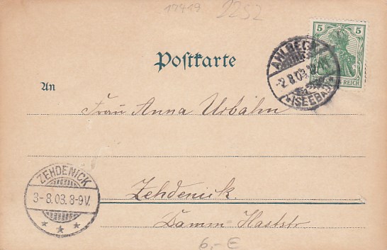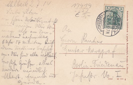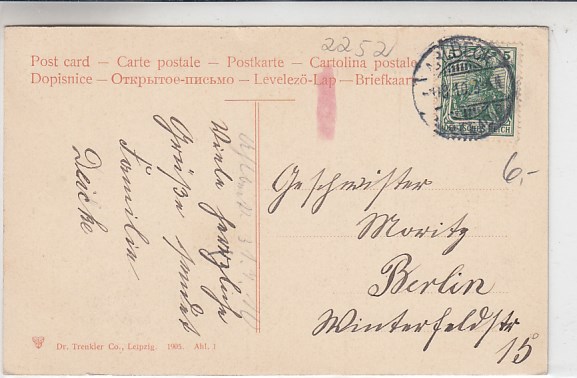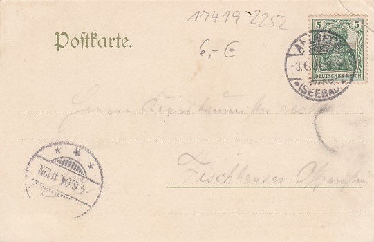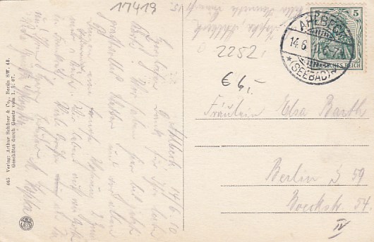 Ostseebad Ahlbeck 1908 Bahnpoststempel Stettin-Swinemünde