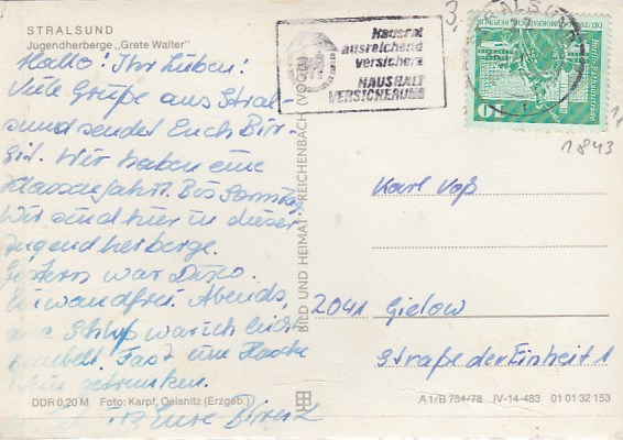 Stralsund Kirche 1953 Stempel Kinderferienlager