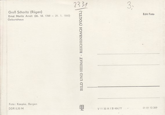Groß Schoritz Rügen Ernst Moritz Arndt Geburtshaus 1977