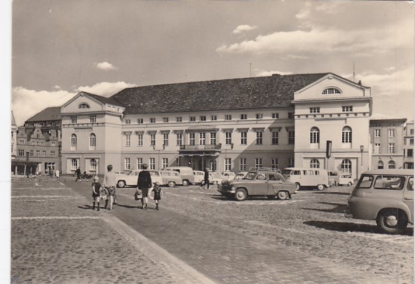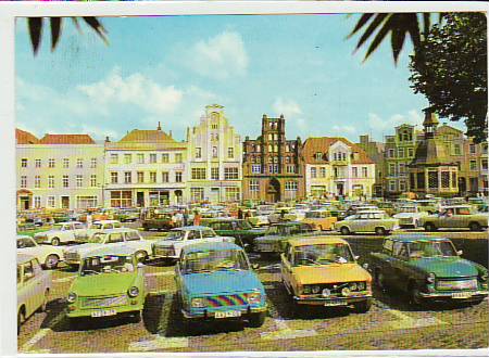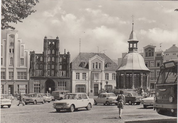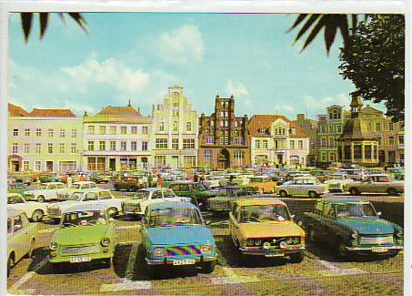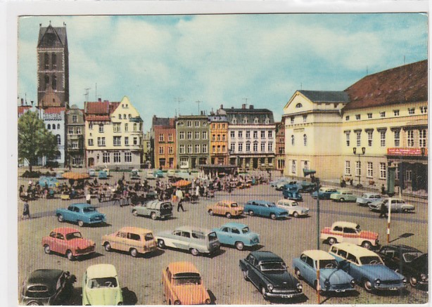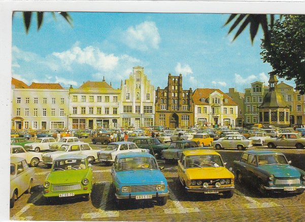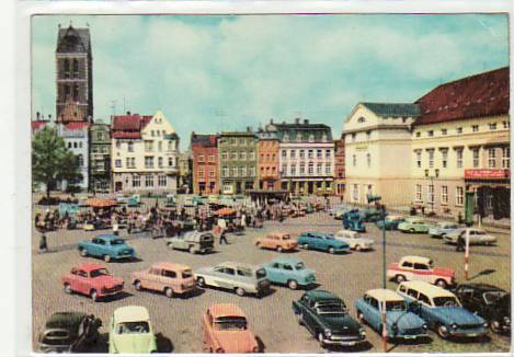 Wismar Markt mit Wartburg Trabant Auto 1965