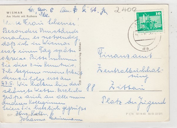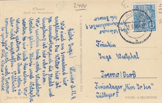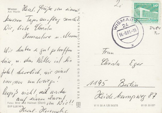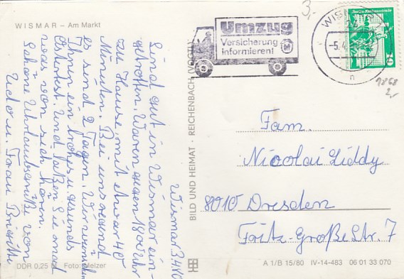 Wismar Marktplatz Bahnpoststempel Wismar-Ludwigslust