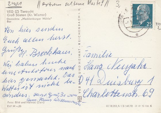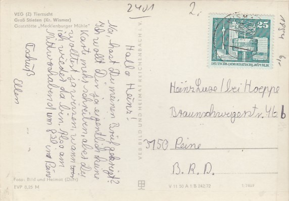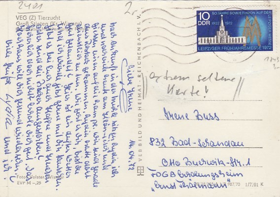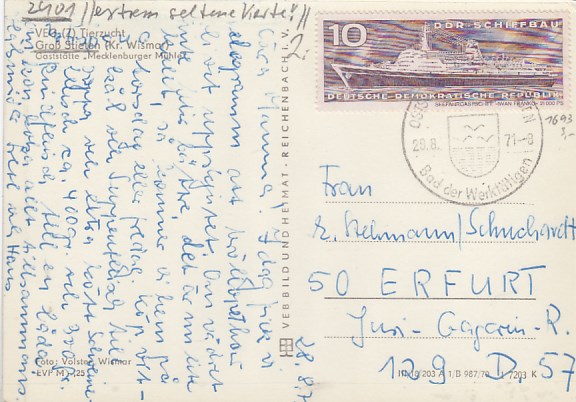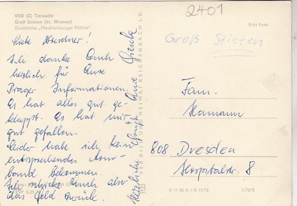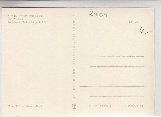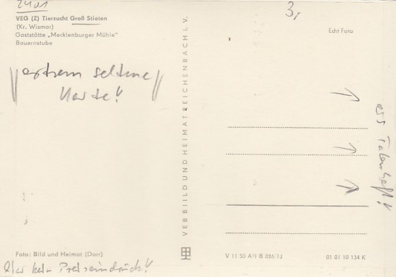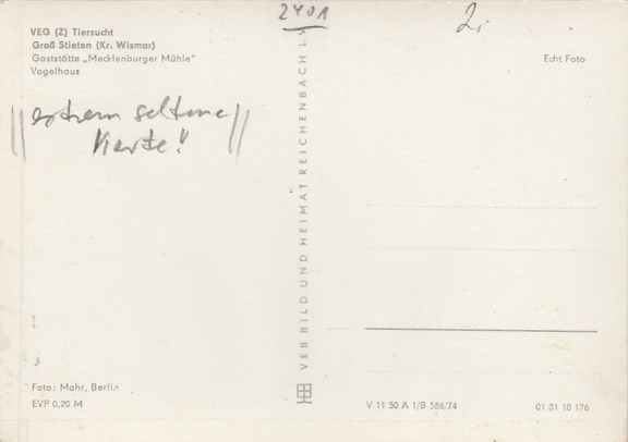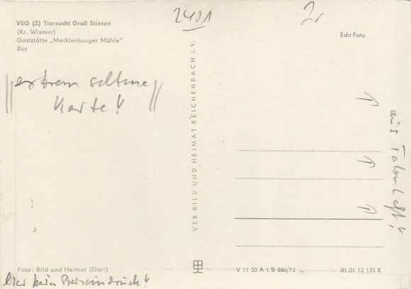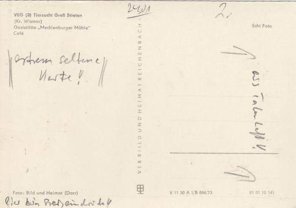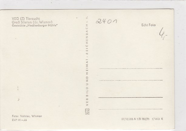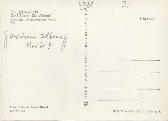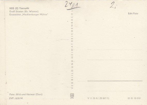 207 [2401o199] |  | Groß Stieten VEB Tierzucht Gaststätte 1971 | 2.00EUR | In den Warenkorb |