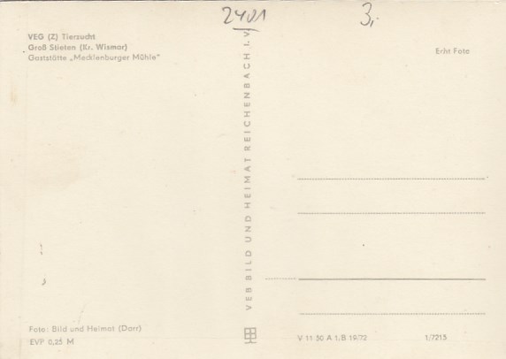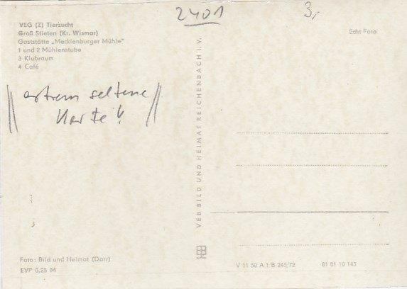 245 [2401o57] |  | Groß Stieten VEB Tierzucht,Gaststätte Windmühle 1972 | 4.00EUR | In den Warenkorb |