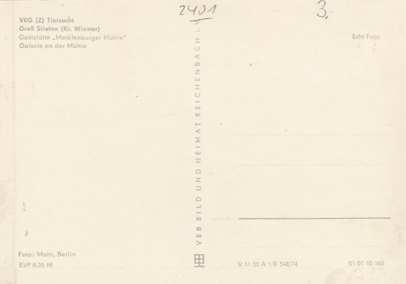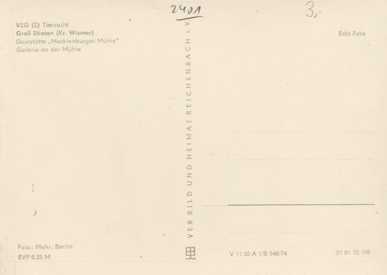 249 [2401o67] |  | Groß Stieten VEB Tierzucht,Gaststätte Windmühle 1974 | 4.00EUR | In den Warenkorb |