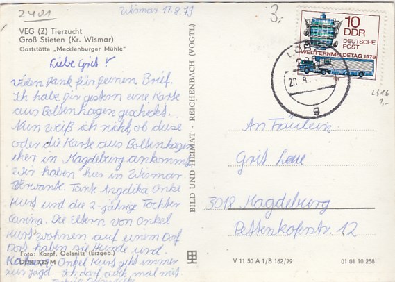 261 [2401o3] |  | Groß Stieten VEB Tierzucht,Windmühle 1979 | 3.00EUR | In den Warenkorb |