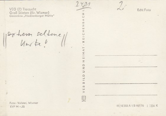 203 [2401o219] |  | Groß Stieten VEB Tierzucht Gaststätte 1970 | 2.00EUR | In den Warenkorb |