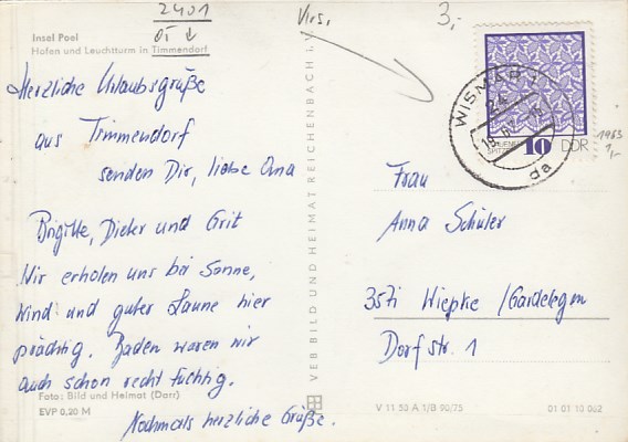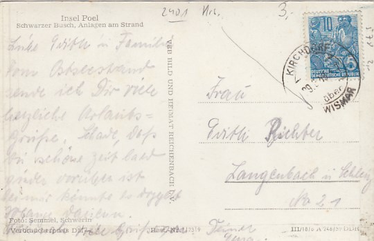 Insel Poel Timmendorf Stempel Kirchdorf 1959
