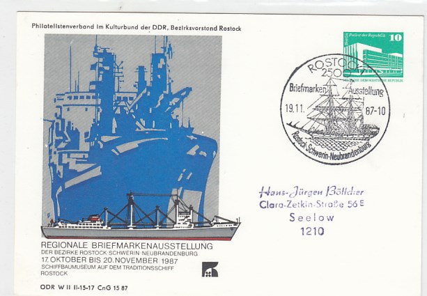 Rostock Anlaß Postkarte Ausstellung 1987