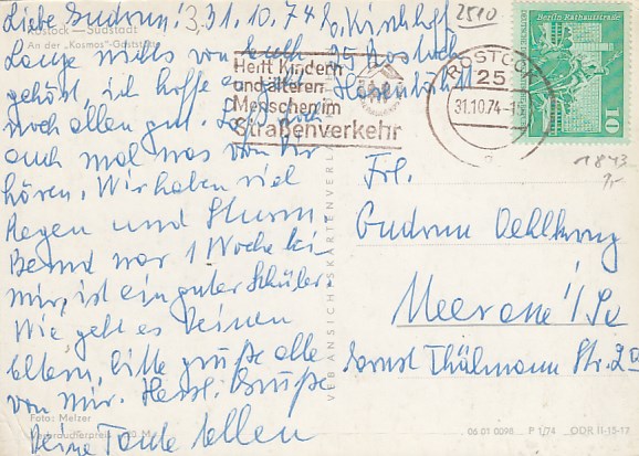 Rostock Stadtteil Südstadt Gaststätte Kosmos 1974