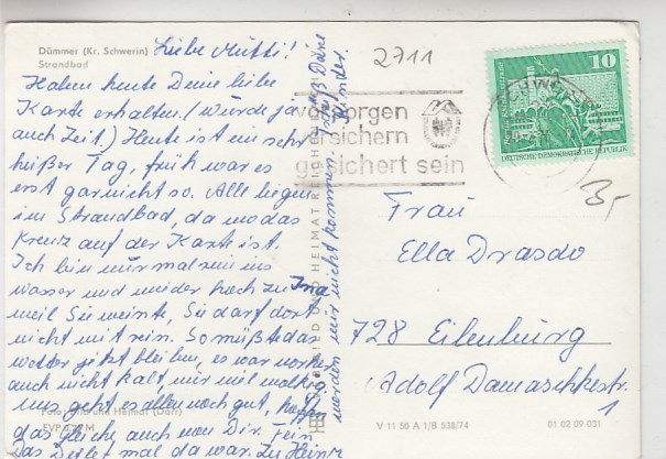 Dabel in Mecklenburg Postkarte mit Sonderstempel 1975
