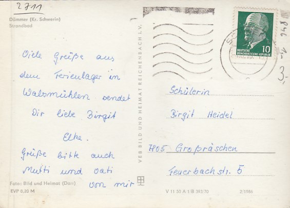 Dabel in Mecklenburg Postkarte mit Schule 1983