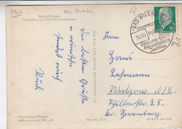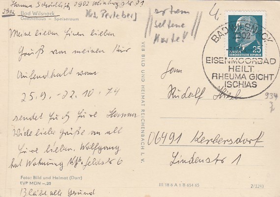 Bad Wilsnack Goethehaus Speisesaal 1957