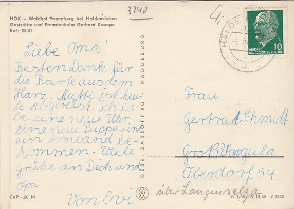 Landpoststempel Paplitz Genthin Wintersport Ski Ilmenau