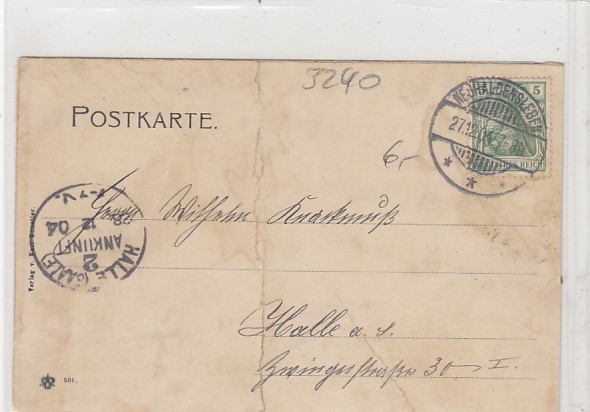 Jacobssee bei Flechtingen mit Bahnpoststempel 1903