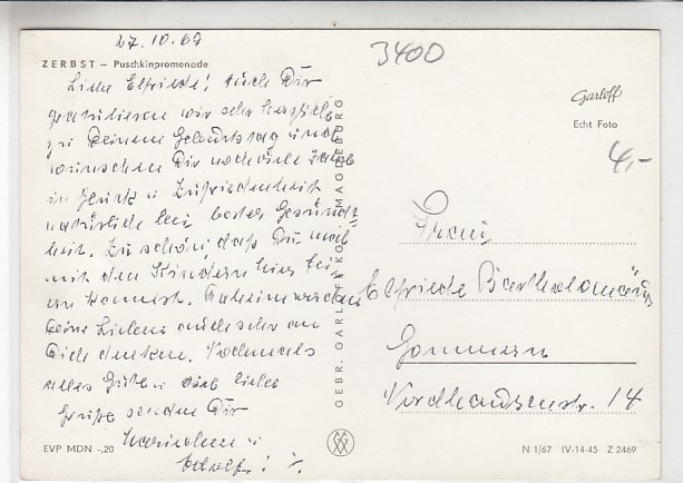 1851 [3400o267] |  | Zerbst in Sachsen-Anhalt Rephunsgarten 1967 | 3.00EUR | In den Warenkorb |