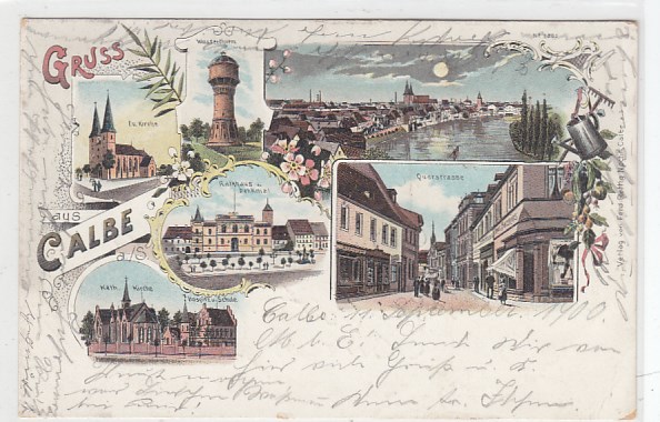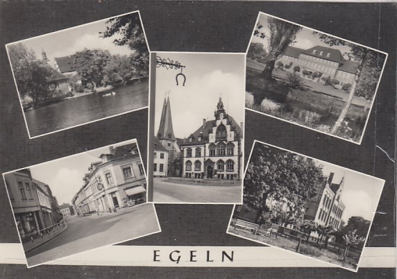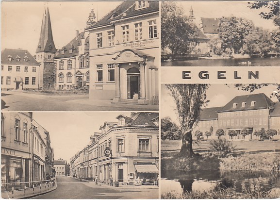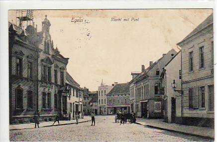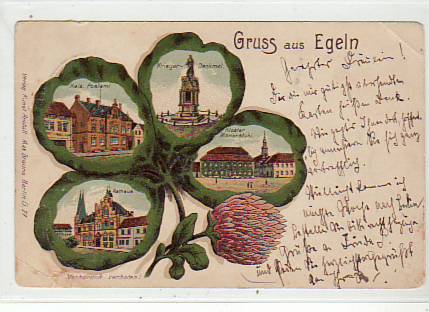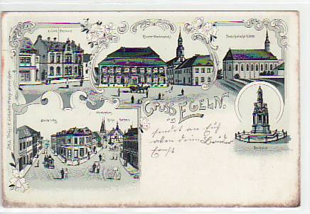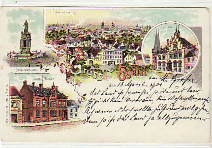 Egeln Litho Ansichtskarte mit Postamt,Kloster 1899