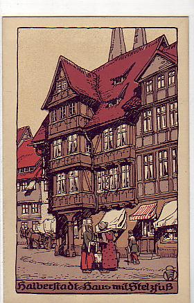 Halberstadt Holzmarkt Künstlerkarte ca 1910