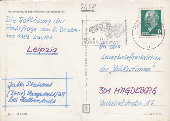 Halberstadt Harz in Sachsen-Anhalt Jagdschloß 1961