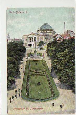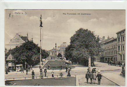 Halle an der Saale Promenade Theater Bahnhof Litho 1904