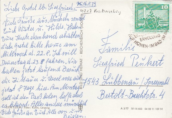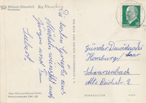 PLZ 01 u. 019 Bad Schandau Dresden Kamenz Tharandt Meißen Riesa->