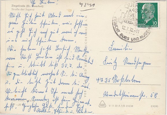 Querfurt mit Landpoststempel Ziegelroda 1957