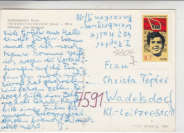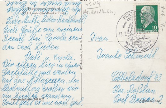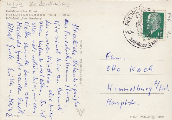 Friedrichsbrunn im Ostharz Postkarte mit Sonderstempel 1975