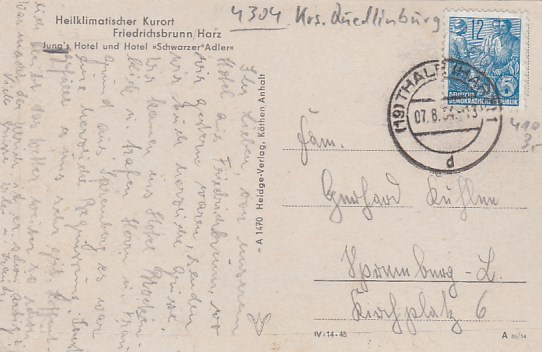 Friedrichsbrunn im Ostharz Sanatorium Dr. Strokorb 1950