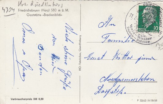 Friedrichsbrunn im Ostharz Haus Fricke 1955