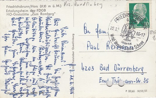 Friedrichsbrunn im Ostharz Gaststätte Zum Ramberg 1965