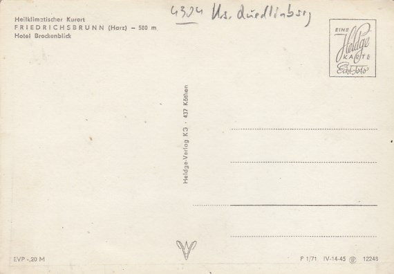 Friedrichsbrunn im Ostharz HO-Hotel Zum Ramberg 1968