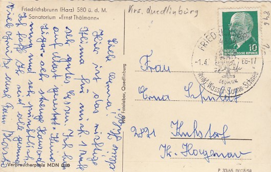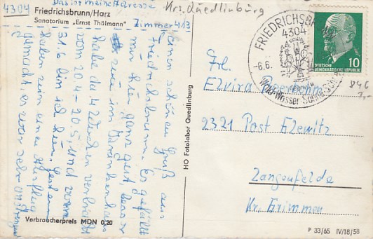Friedrichsbrunn im Ostharz Sanatorium Thälmann 1965