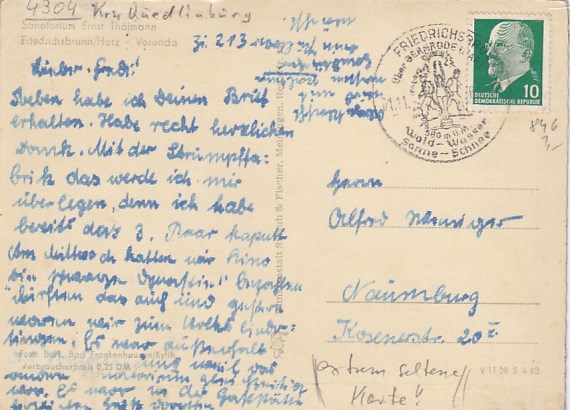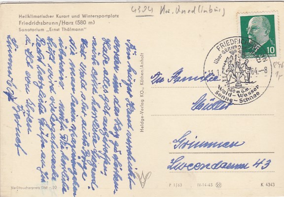 Friedrichsbrunn im Ostharz Sanatorium Thälmann 1963
