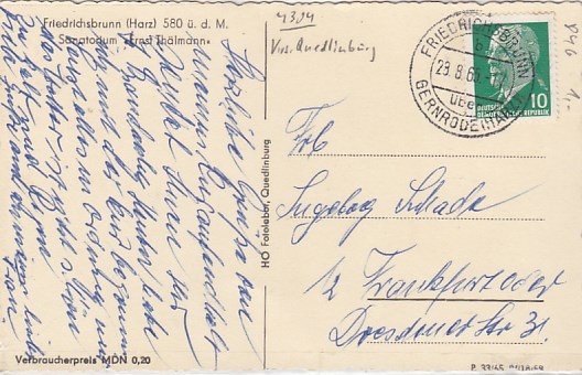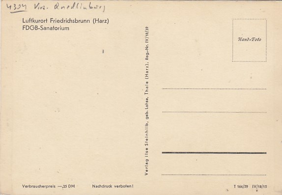 Friedrichsbrunn im Ostharz Sanatorium Thälmann 1959
