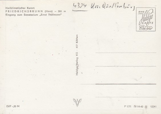 Friedrichsbrunn im Ostharz Sanatorium Thälmann 1971