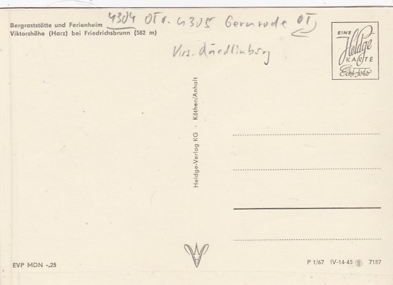 Friedrichsbrunn im Ostharz Viktorshöhe 1967