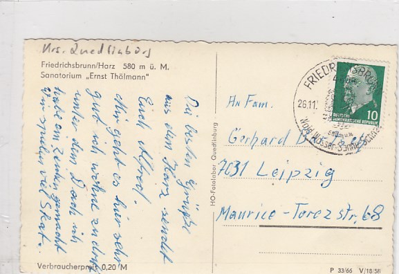 Friedrichsbrunn im Ostharz Sanatorium Thälmann 1966