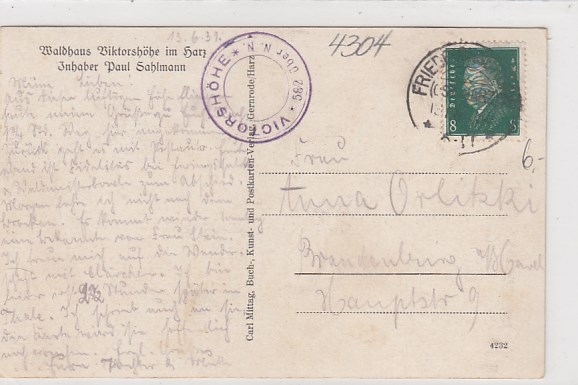 Friedrichsbrunn im Ostharz Viktorshöhe 1930