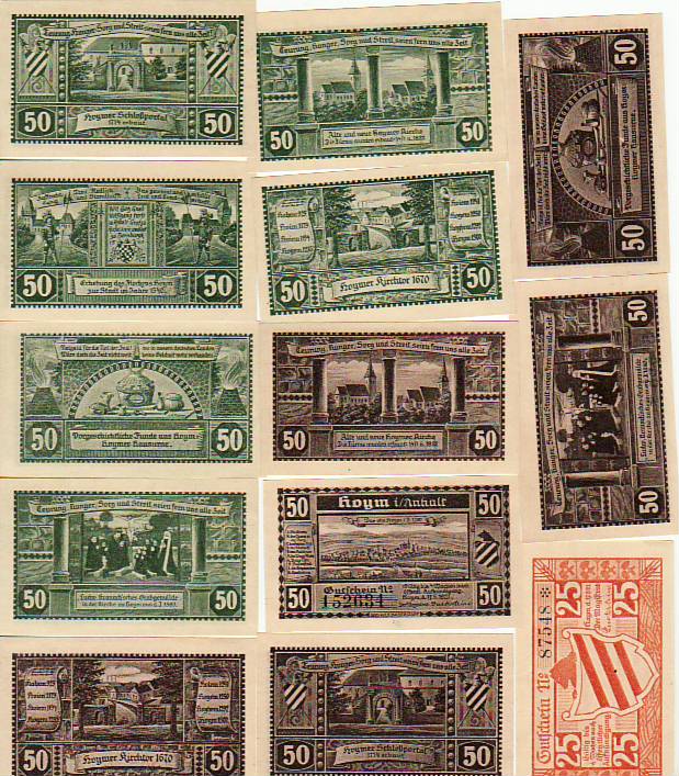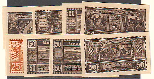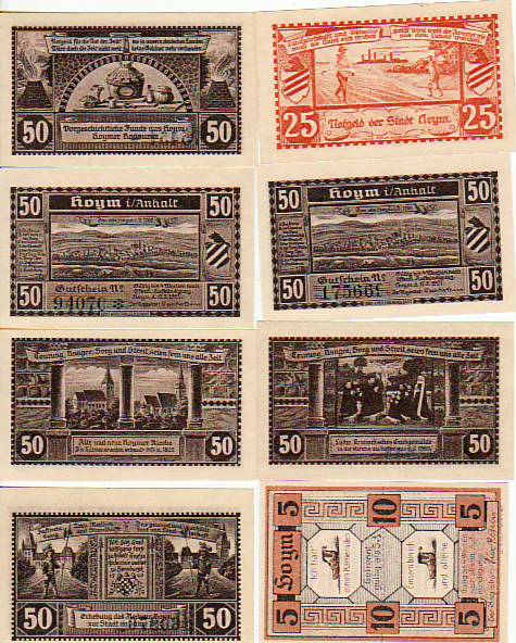 Hoym , Anhalt 8 Scheine Notgeld mit Bildern der Stadt