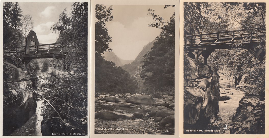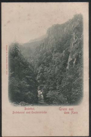 Teufelsbrücke Botethal bei Thale im Harz Litho von 1899
