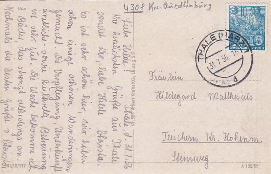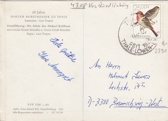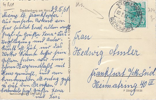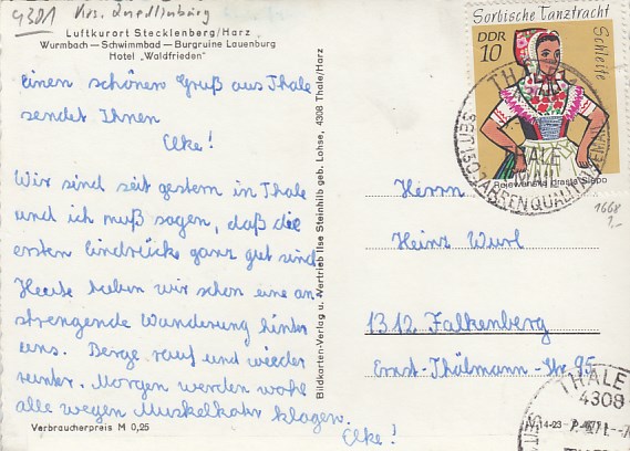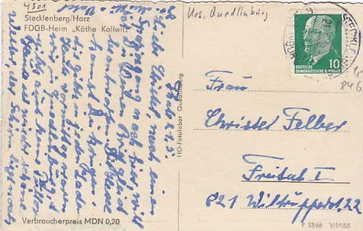 Stecklenberg im Harz Gaststätte Käthe Kollwitz 1966