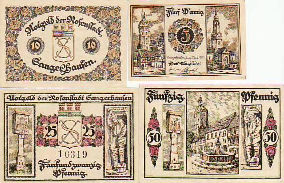 Sangerhausen 4 Scheine Notgeld 1921