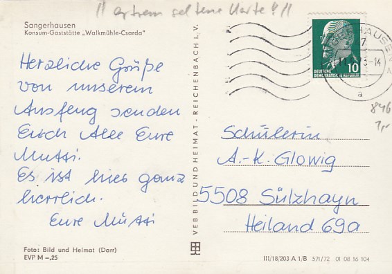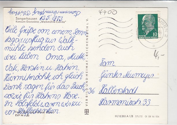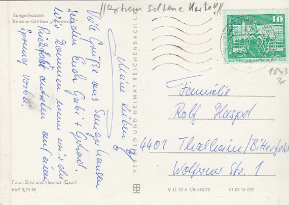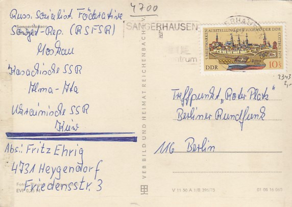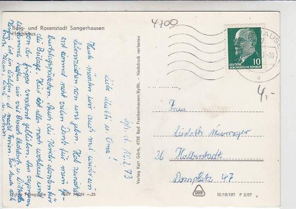 Sangerhausen Belege Postkarte 1981