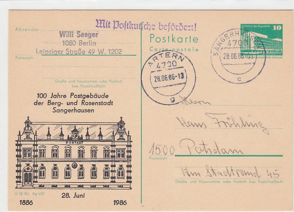 Sangerhausen Anlaß Postkarte 1986