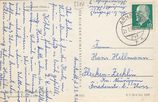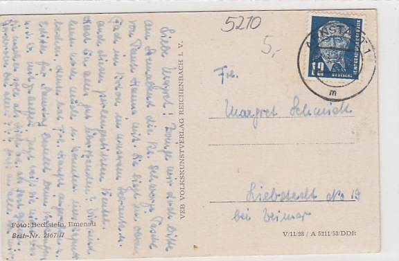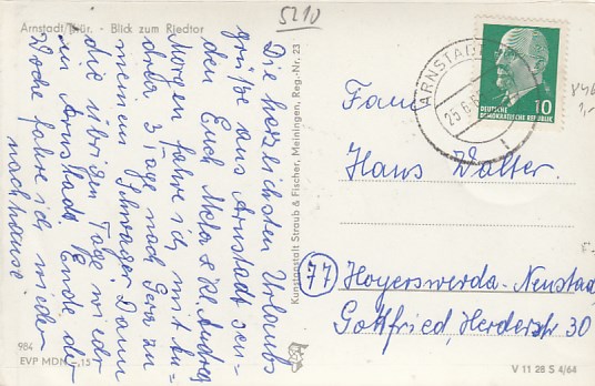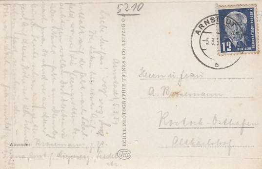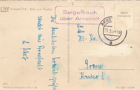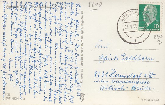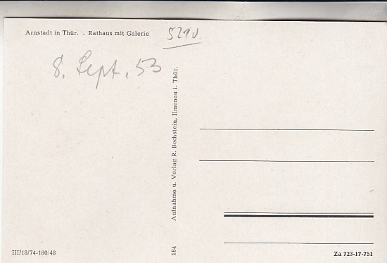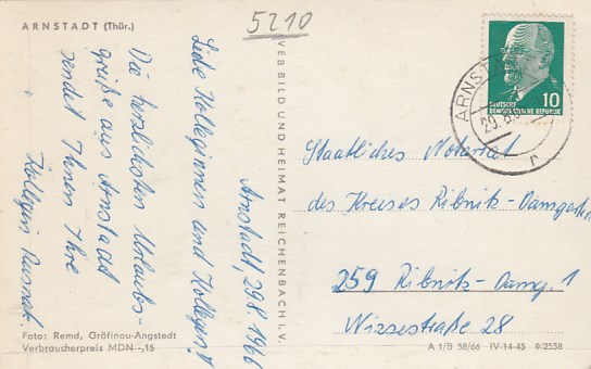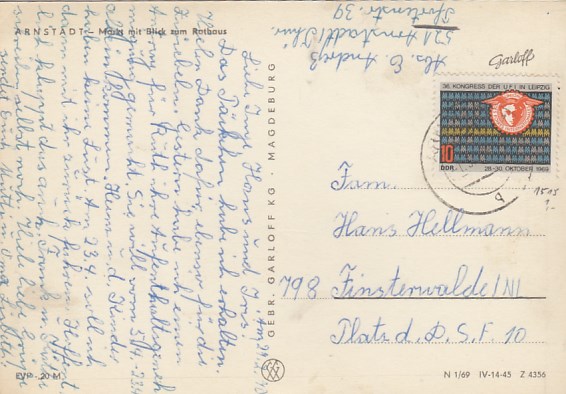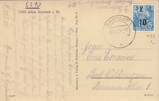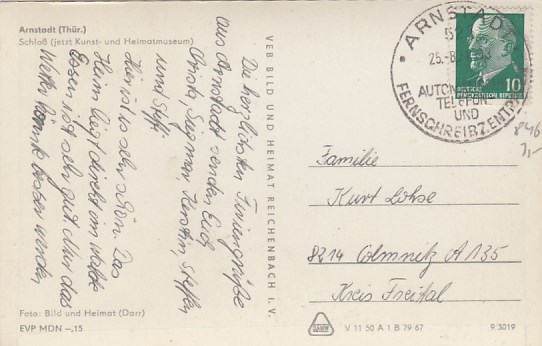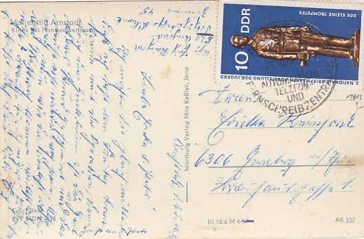 Arnstadt Thüringen Anlaß Stempel Fernschreibzentrale Telefon 1966