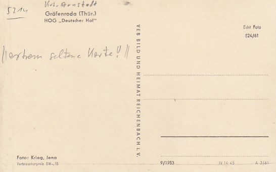 Gräfenroda in Thüringen Gaststätte Deutscher Hof 1961