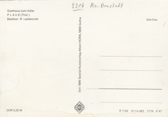 Plaue in Thüringen Gasthaus zum Adler 1984