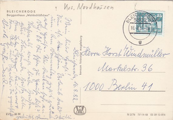 Bleicherode in Thüringen Berggasthaus Waldschlößchen 1975