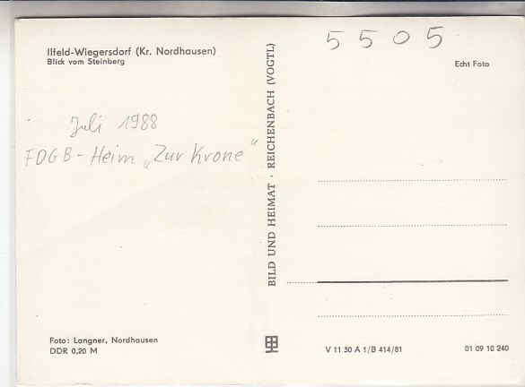 Ilfeld Wiegersdorf Südharz in Thüringen Hotel Netzkater 1964