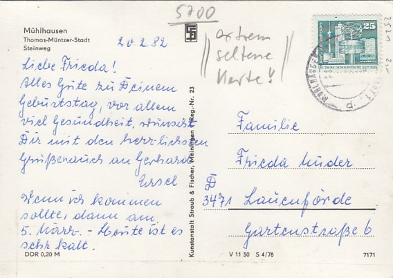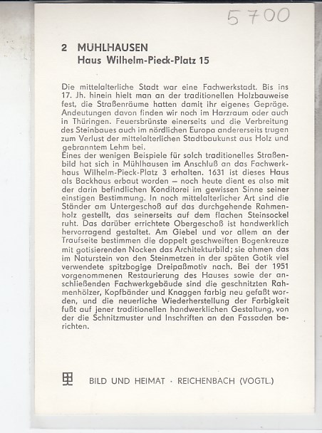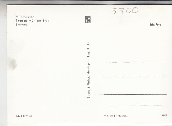 Mühlhausen in Thüringen Rückseite mit Geschichte